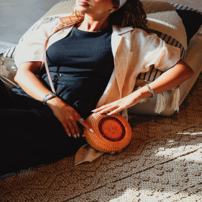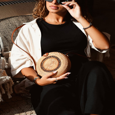 - التفاصيل: شنطة من القماش المحبوك تناسب اطلالتك ف البحر
